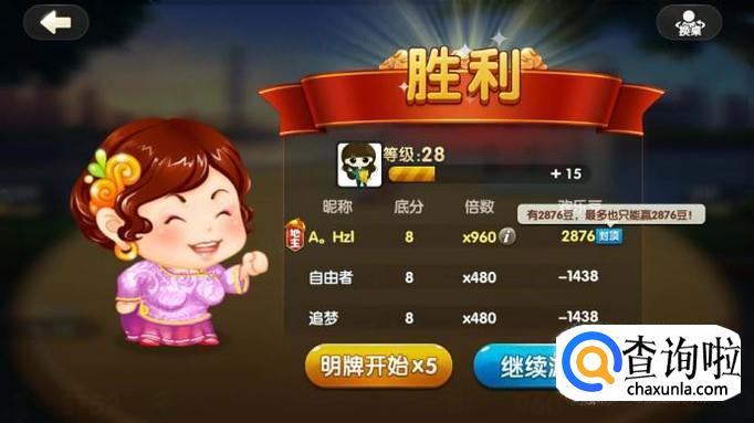 当然,如果你本身的欢乐豆很少或者你的欢乐豆相对于另外两位玩家的欢乐豆数量要少很多的话,是无法进行加倍操作的;