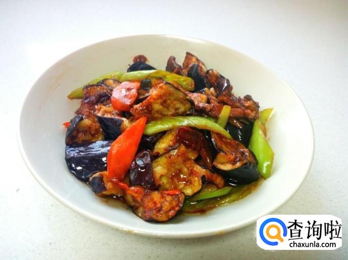 紫茄子 2个,五花肉 75克, 青尖椒 1个, 胡萝卜 半根。