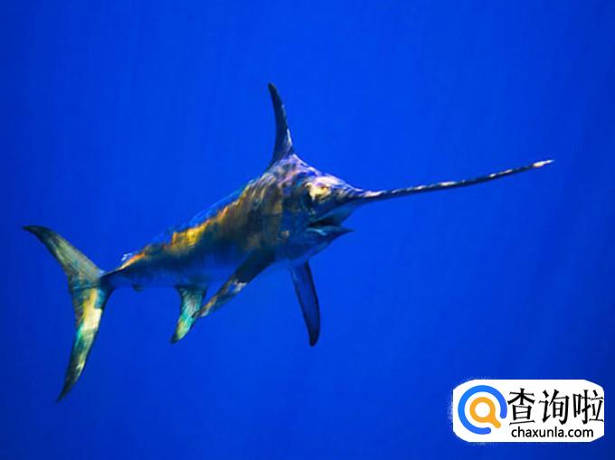 枪鱼,马林鱼海水鱼像旗鱼一样有长形上颌,以高速回游于海洋间,它的背鳍延长到身体的后面,腹鳍成为丝状。