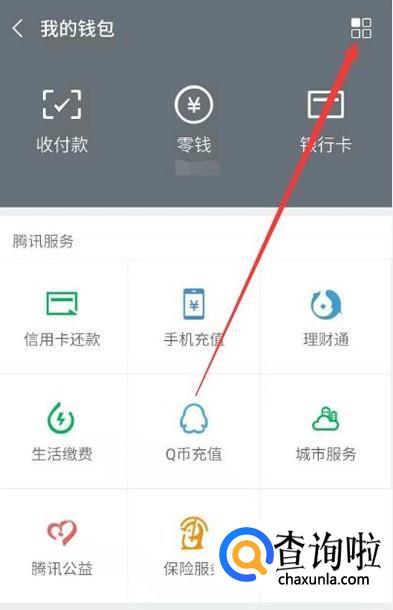 进入我的钱包页面后,点击右上角的扩展功能键,如图: