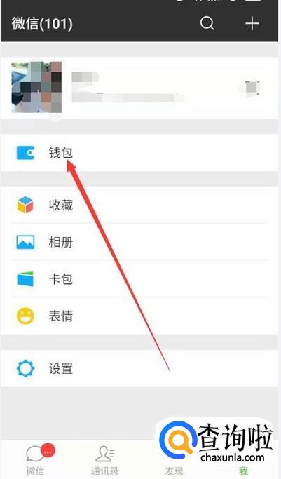 打开个人微信页面,点击右下角“我的”,进入我的页面后,点击“钱包”