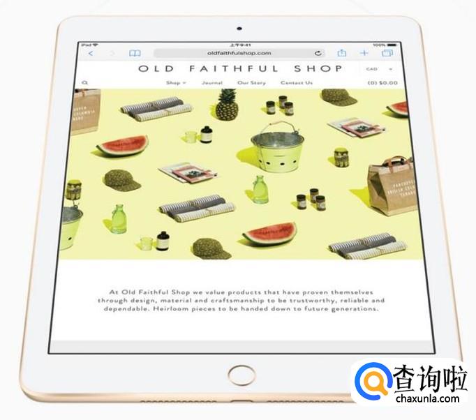 新版iPad采用苹果64位架构的A9芯片处理器,后置800万像素摄像头,前置120万像素摄像头,支持触控ID指纹识别功能,以及内置陀螺仪、气压计、光线感应等各种传感器,操作系统为iOS 11版本。