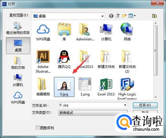 点击打开选项在弹出的打开对话框内找到我们的图片,如图所示: