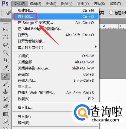 打开ps在文件菜单哪里找到打开选项,如图所示: