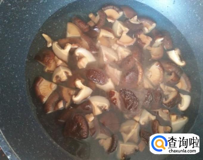 下水煮水开之后十分钟,把香菇煮熟。