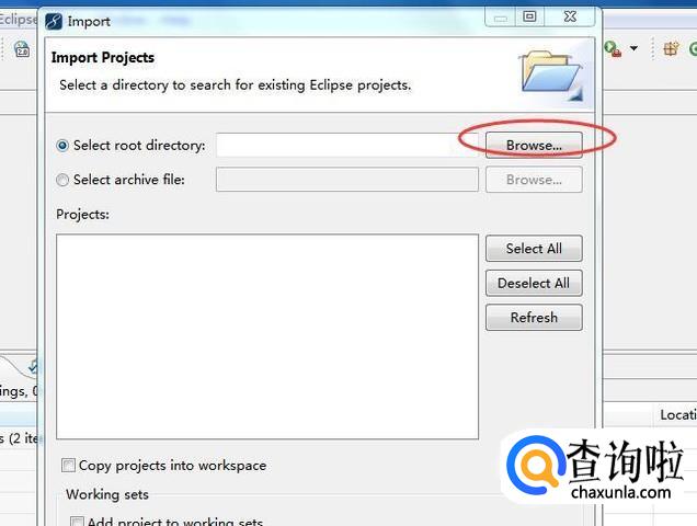点击【Browse】按钮,选择要导入的项目,如下图所示: