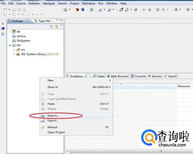 然后在左侧空白地方右击,选择【Import】选项,如下图所示: