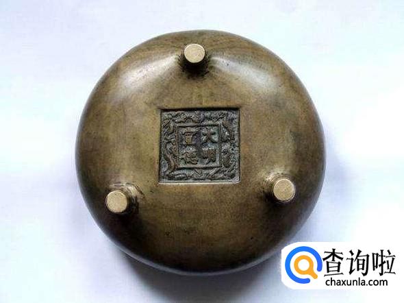 大明宣德炉有自然均匀的磨损,特别在底部接触处;而假冒的大明宣德炉无磨损或人为打磨不自然。