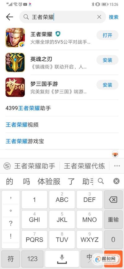 输入王者荣耀,然后点击搜索。