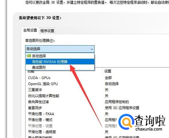 将其设置为“高性能NVDIA处理器”就会使游戏更加流畅,如图所示。