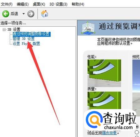 进入之后,点击“管理3D设置”,进入下一页面,如图所示。