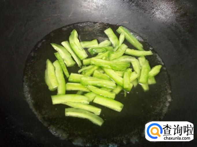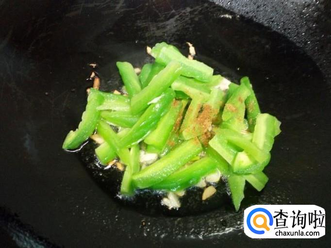 锅里放入油加热,油热后放入葱,姜,蒜爆锅,放入苦瓜翻炒,放入五香粉。