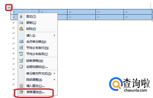 然后,如图所示,我们点击表格左上角图标,全选表格后,右键点击,选择“表格属性”。