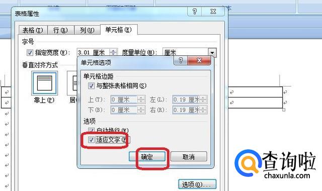 出现单元格选项面板,我们勾选其中的“适应文字”复选框,点击确定,关闭面板就可以了,这样,输入文字时就会自动调节大小适应单元格了。