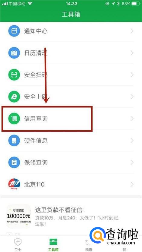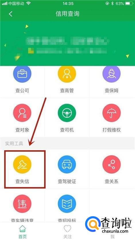 如下图,点击查征信。