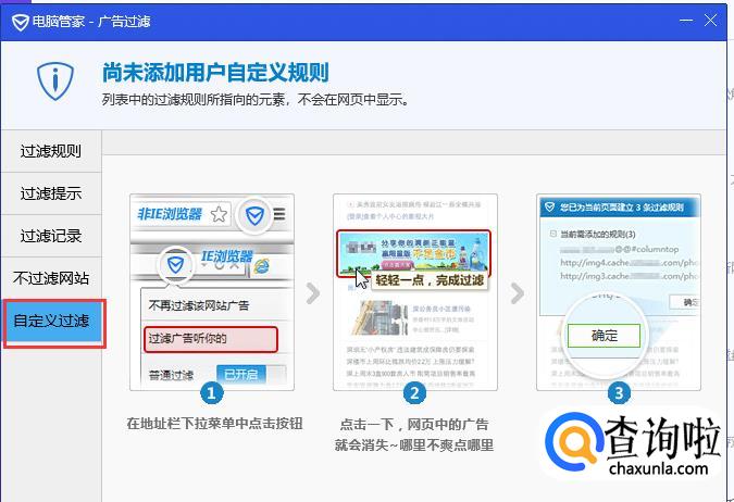 还可以自定义过滤,这个是在网页里边去单独自定义拦截的广告。