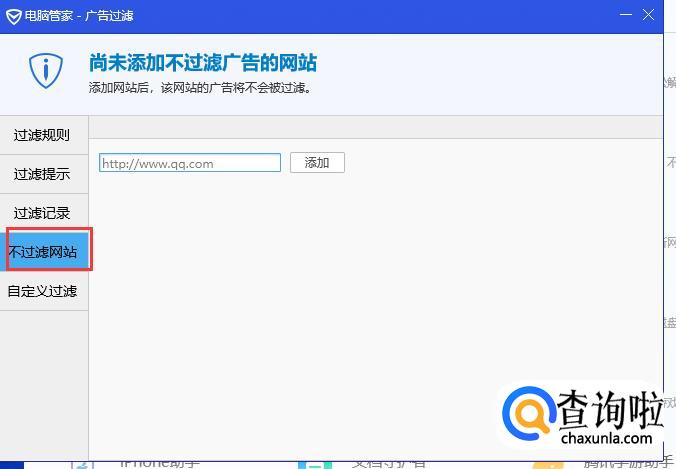 也可以加入不过滤的网站,有些网站你希望有广告或者弹窗等,那就加入白名单。