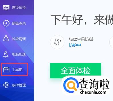 打开电脑上的电脑管家,点击工具箱。