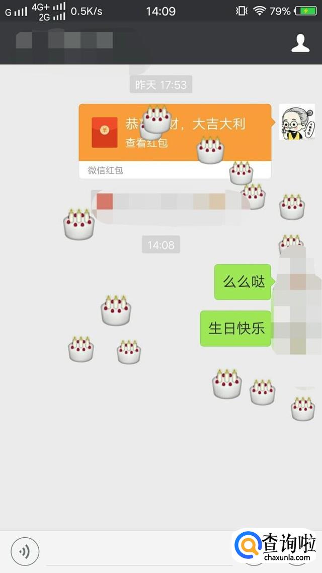 发送生日快乐或者birthday都会有蛋糕掉下来。