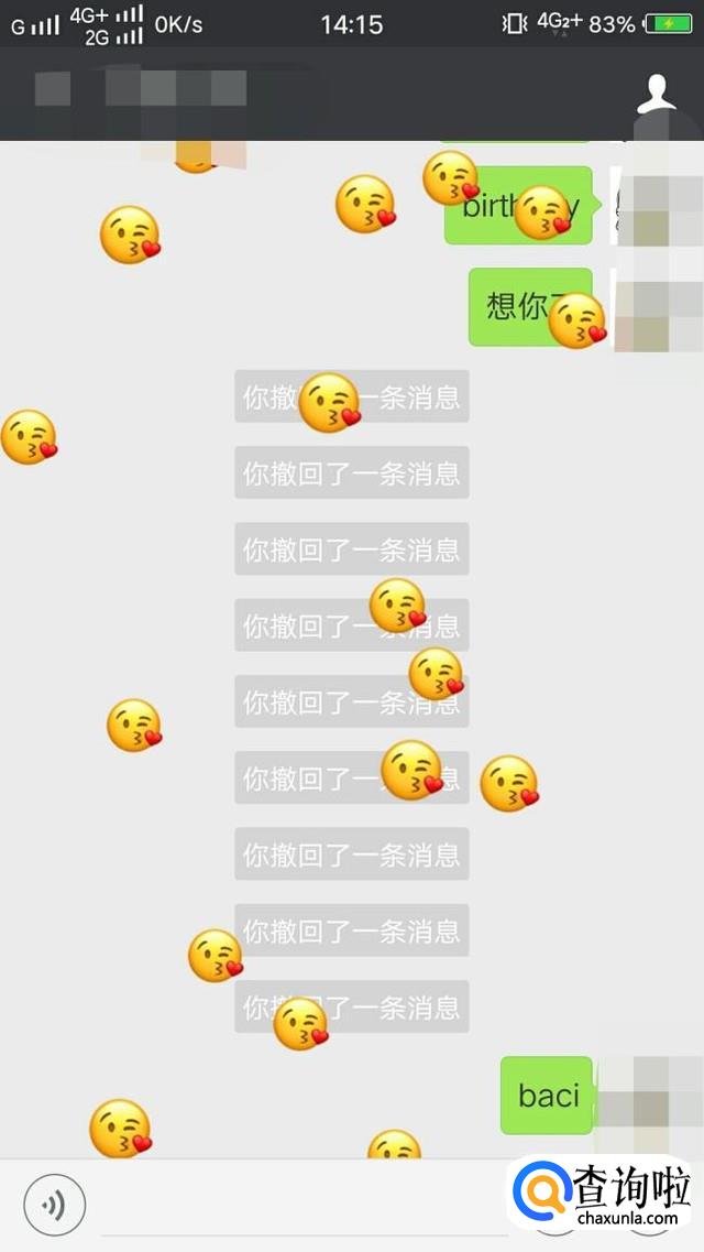 发送XOXO、cium、baci、besos也会有亲吻表情掉下来。
