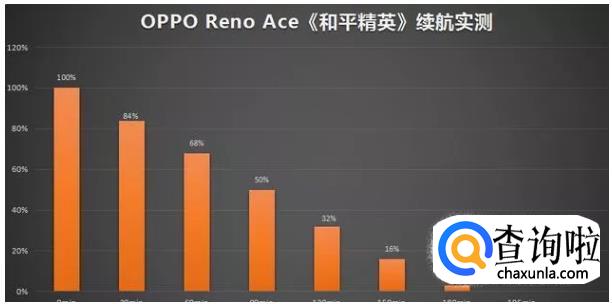 通过上手《和平精英》游戏来看,在HDR高清画幅和极限帧数高强度的游戏状态下(游戏的顶配设置,耗电量更快),OPPO Reno Ace在满格电量之后玩了60分钟之后,电量还剩68%,90分钟过后电量也仅仅只用了一半。而玩了185分钟之后,OPPO Reno Ace的电量才被完全耗完。