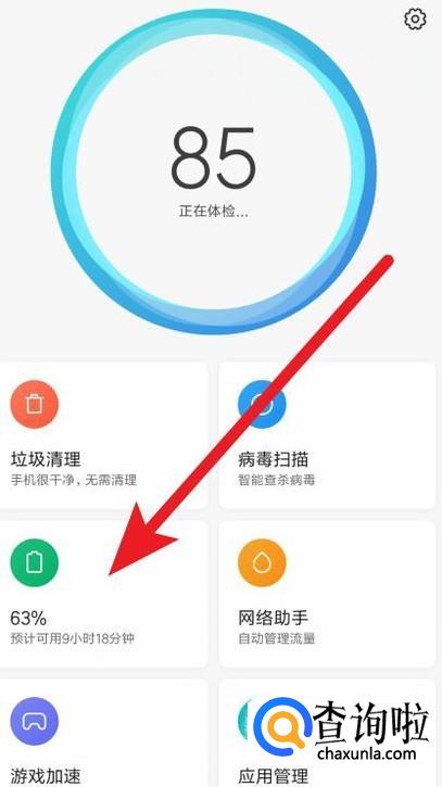 打开小米手机的安全中心,在下面选择电量。