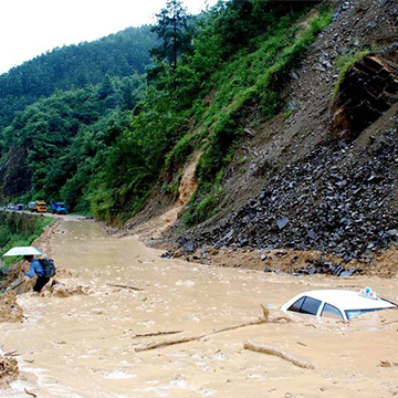 我国从70年代起就开始利用降雨,开展了泥石流预报的研究工作,80年代以后成功预报了多次泥石流灾害。泥石流撞击、摩擦沟床引起的并以岩石等介质传播开来的声波被称为泥石流地声。泥石流地声是随着泥石流的流动而产生的一种振动,会随着泥石流堆积而终止,具有独特的振动波形和频率。如果把不相关的振动和泥石流地声区别开来,测出参数,泥石流的前期发展就能通过监测仪器实时预报,从而测量其暴发状态。