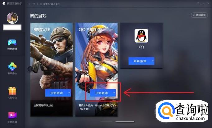在“我的游戏”分组中,找到“QQ飞车手游”,点击对应的“开始游戏”按钮。