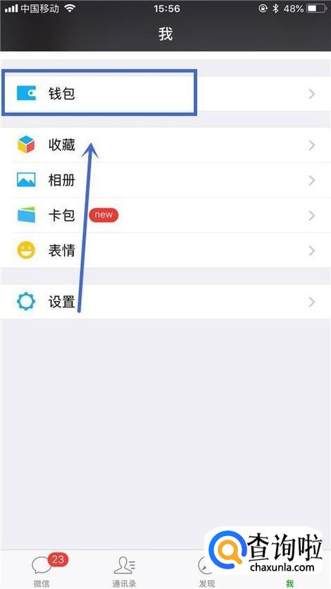 首先点击微信中的钱包,如下图所示。