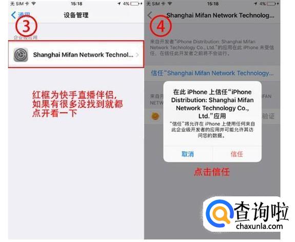 在设置中进行应用信任:进入设置-->通用-->描述文件与设备管理-->找到IOS直播伴侣-->选择信任-->完成。