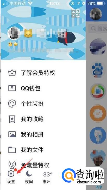 首先我们先登录qq,点击左上角的头像进入到设置功能里面。