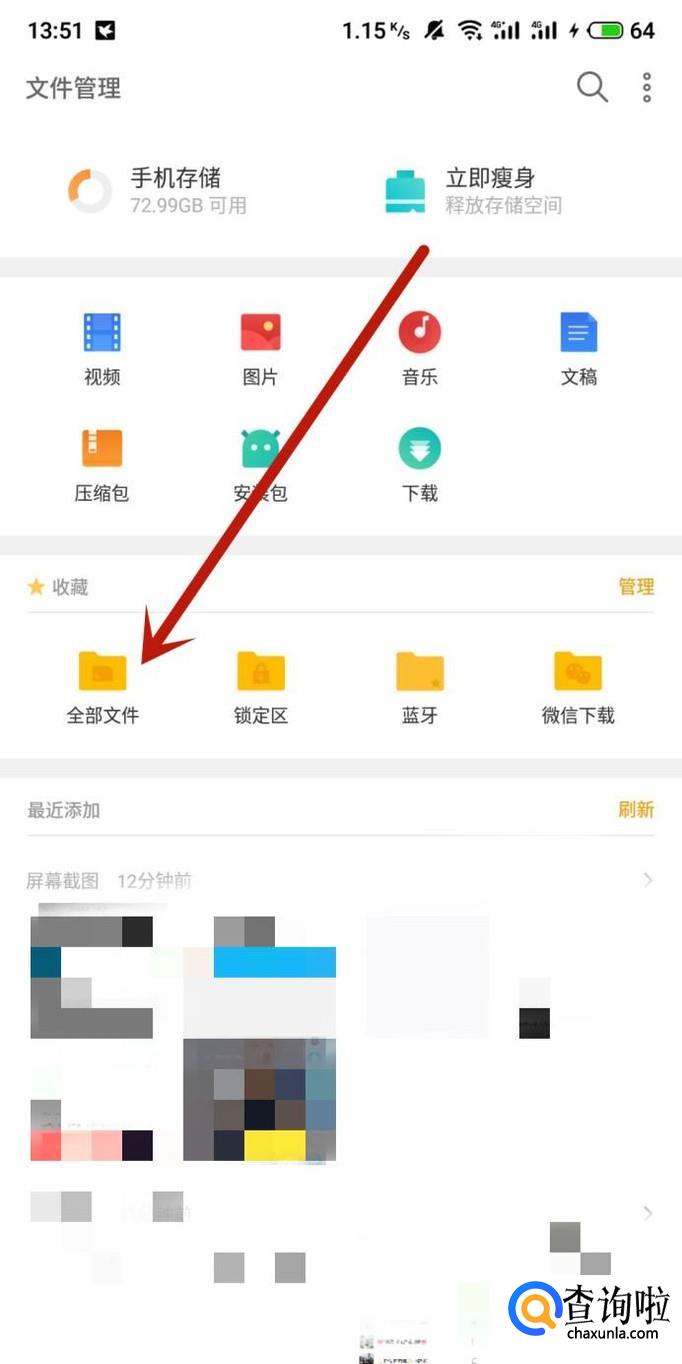 在手机文件管理选择“全部文件”,如图所示。