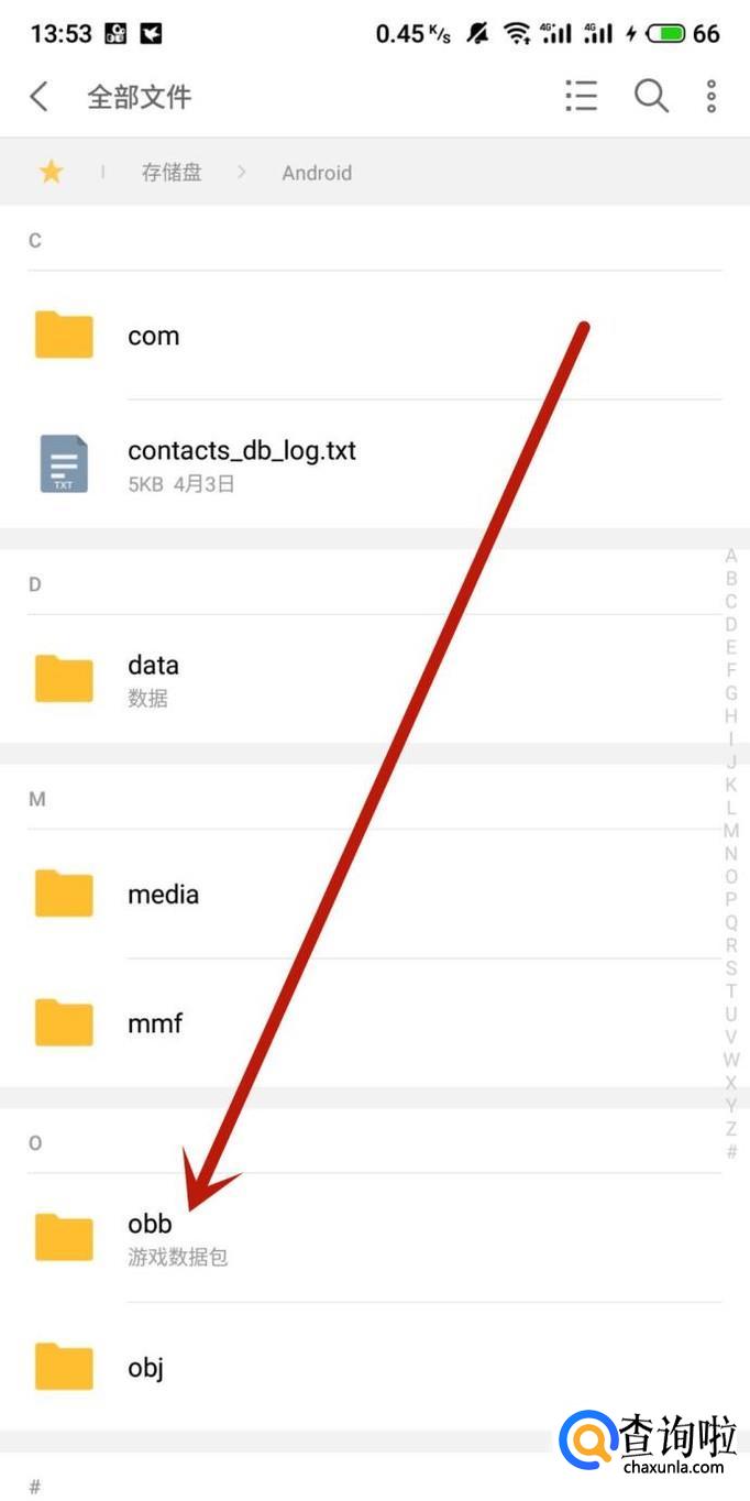 进入之后,选择“obb”文件夹,如图所示。