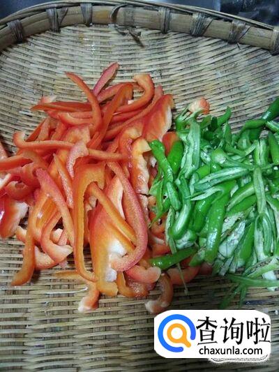 青椒切丝、红椒切丝备用