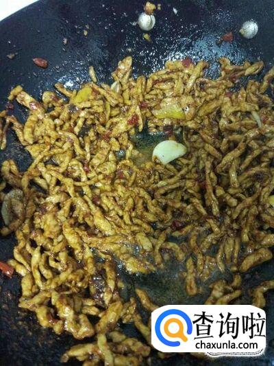 热锅下油,放入准备好的肉丝进行翻炒