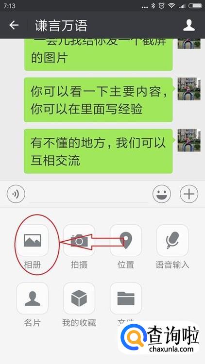 打开对方的对话框,点击右边的加号,找到相册。