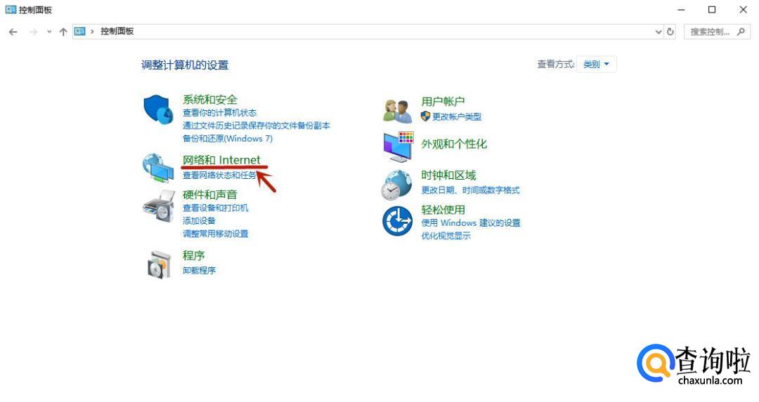 首先,我们打开“控制面板”,进入“网络和Internet”。