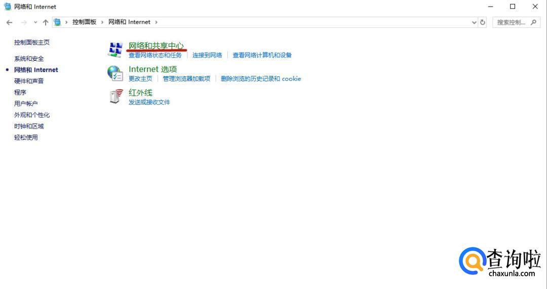 进入“网络和Internet”后,选择进入第一个“网络和共享中心”。
