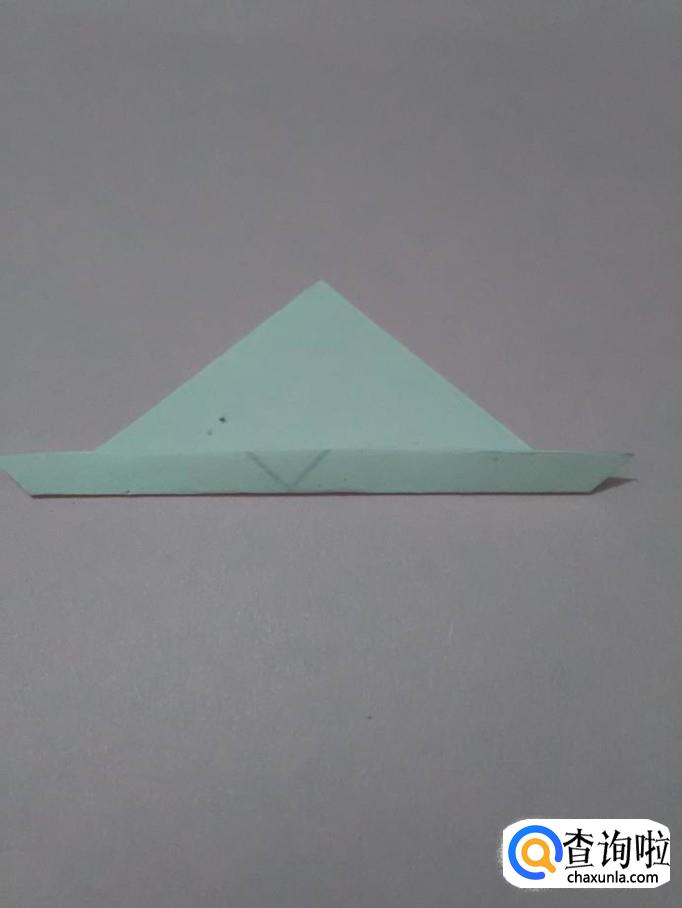 把三角形反过来,再把底边向上折相同宽度的一小段。