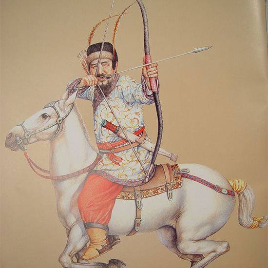 为了给全军作出表率,他自己带头穿起胡服,并要求身边的将军、大夫,嫡子、代吏全部穿著,从而结束了这场争论。赵武灵王所采用的"胡服",主要有窄袖短衣和合裆长裤:窄袖短衣便于射箭,合裆长裤便于骑马。和这些服装相配套,当时流行于西域的冠帽、腰带以及鞋履等也一并被采用。
