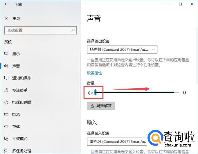之后我们看到声音目前显示的为0,我们将声音的滑动开关向右滑动;