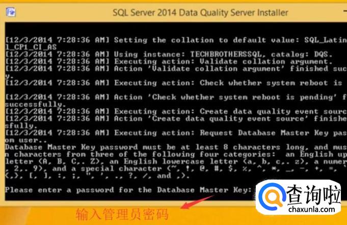 接着会弹出一个Data Quality的安装命令行界面,我们需要在其中输入管理员的密码,如下图所示