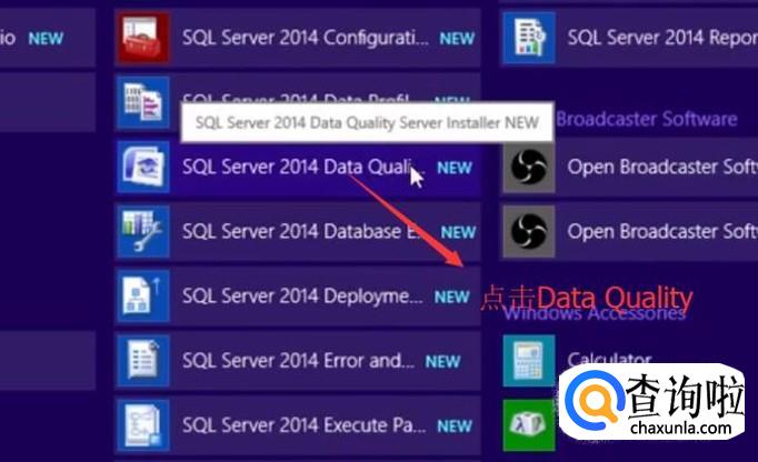 然后我们打开开始菜单,点击SQL Server 2014 Data Quality Server Installer NEW选项,如下图所示