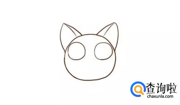 可爱猫咪的眼睛很水灵,你要在大圆里画两个大小相等的小圆来作为猫咪的眼眶。