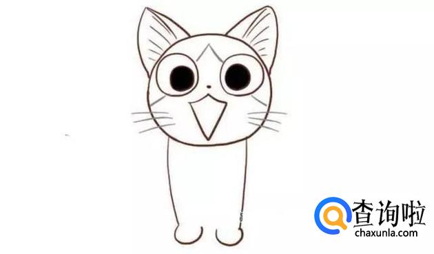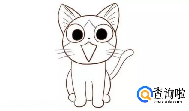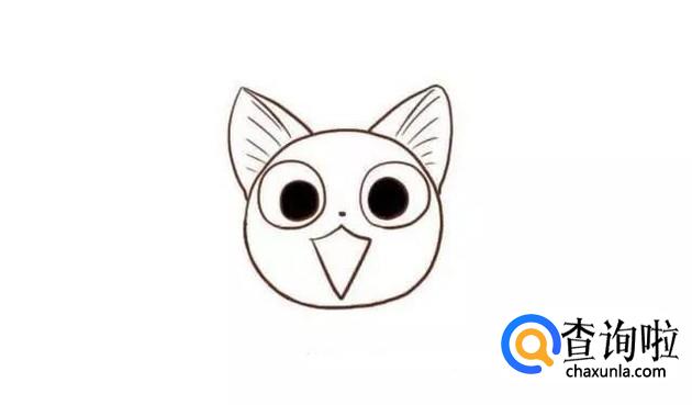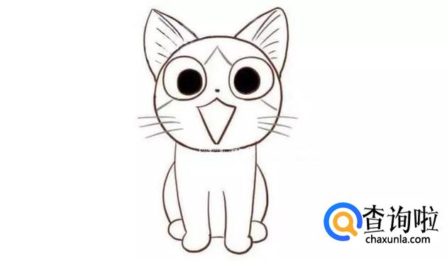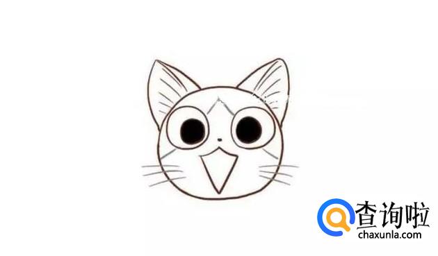 黑色的小圆是猫咪的眼睛,将猫咪的鼻子用一个小点来画出来,嘴巴是菱形的,想要表现出猫咪的毛茸茸,在耳朵里轻轻地柔和地画上几笔,Q萌的感觉就出来啦。