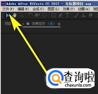 启动AE软件,进入到操作界面;在界面上面的菜单栏中,点击:文件