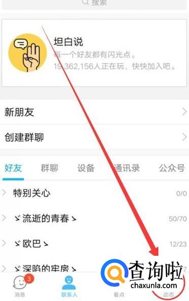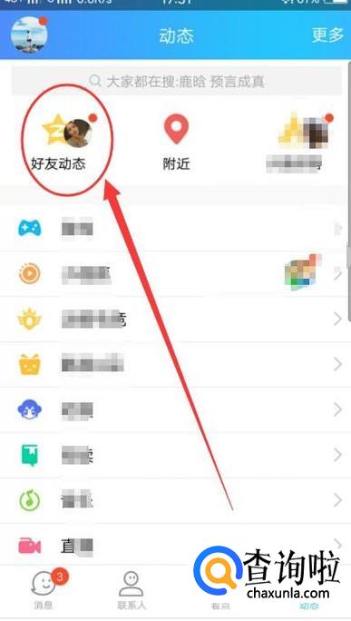 在动态页面,点击“好友动态”,进入下一界面,如图所示。