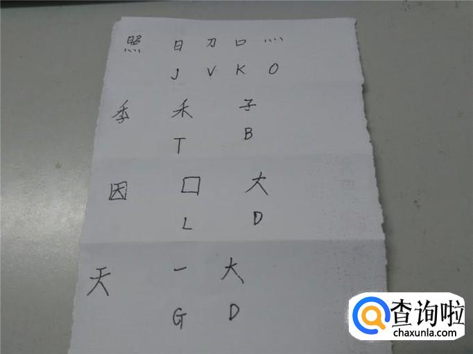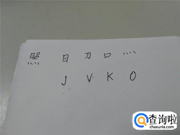 比如照字,根据书写的顺序,拆成日、刀、口、四个点,这四个字根的对应字母是JVKO,这样拆,就能打出这个照字来了。
