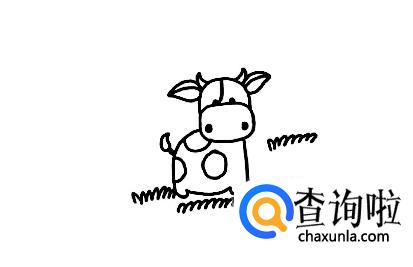 画出牛的尾巴和牛身上的纹路。再画点草之类的,就完成了。