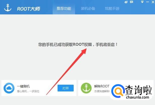 重启几次之后,系统会自动提示root成功,如图所示。